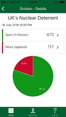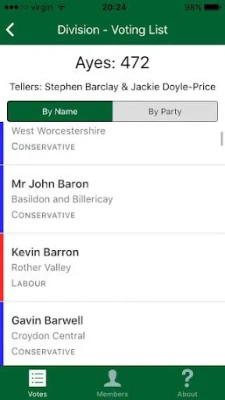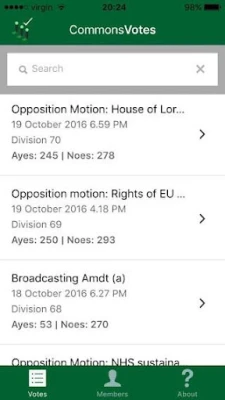 CommonsVotes shows you how MPs have voted in divisions (votes) in the House of Commons. Data is provided approximately 20 minutes after the result is announced in the Chamber.