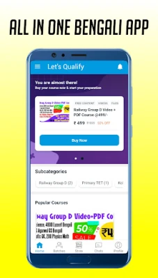 Let's Qualify App is Bengali App For Young Job Seekers and would be Entrepreneur, who are looking for Govt Jobs & Own Start-Ups also. We Provide Special Study Materials Like PDF, Daily Mock Test, Informative Videos, Growth Quiz, Life Lessons etc. In the job Sector we cover - WB Primary TET, WB Police Constable, SI, Exercise and Food Supply SI, Railway Group D & NTPC, WBCS, WBPSC, SSC CGL, CHSL, MTS and all Central Govt and State Govt Competitive Exams.